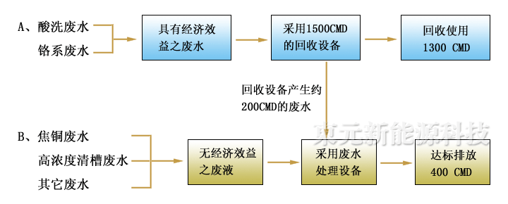 電鍍綜合排放廢水回用系統工藝流程示意圖如下:
