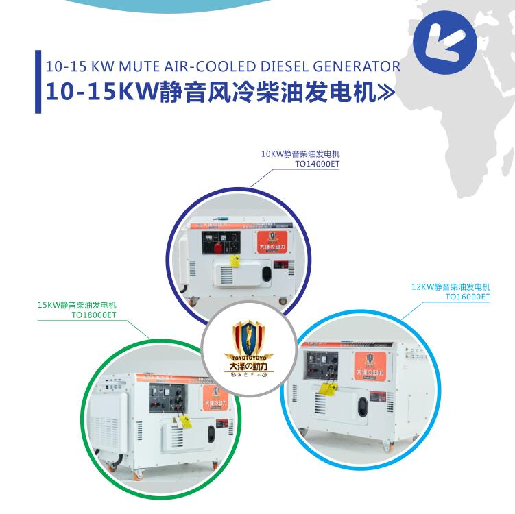 10kw電啟動靜音柴油發電機TO14000ET大澤柴油發電機是由內燃機驅動的發電機。柴油發電機是由柴油機和發電機組成,柴油機作動力帶動發電機發電,發動敏捷,操作便當,噪音較大,動力較足,適用于工地,修建:不適用于公共人多場合。電動機直接發動時電流為7倍左右,先得滿意發電機組>7*電動機功率。