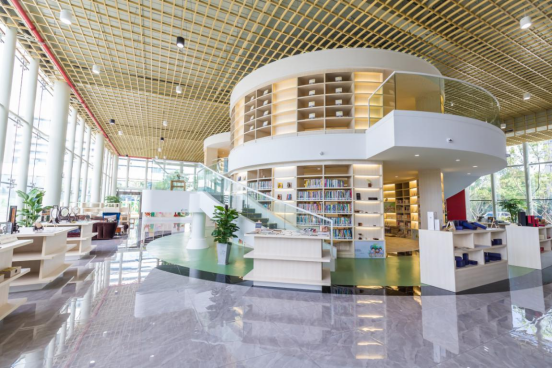 圖書館總面積約1000平方米,藏書量約3萬余冊,與市圖書館借閱系統互聯互通。分上下兩層,一層設有流動的園藝中心、成人閱讀區、少兒閱讀區、低幼閱讀區、文創展示區和休閑區;二層設有休閑閱讀區和咖啡廳。書苑內配備了先進的智能化自助服務設備,市民可以通過支付寶進行芝麻信用免押金辦證,并利用“支付寶掃碼”“微信掃碼”“人臉識別”等方式自助借閱。