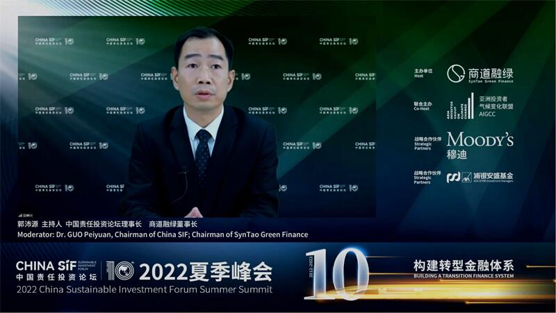 China SIF理事長、商道融綠董事長郭沛源博士主持本屆峰會。他介紹到,今年是商道融綠發起China SIF的十周年。經過多年努力,China SIF已成為中國倡導責任投資的一面旗幟,打造了China SIF年會、夏季峰會及責任投資十大趨勢等有影響力的品牌項目。本屆峰會聚焦當下熱點,深入討論轉型金融的政策體系和市場趨勢。