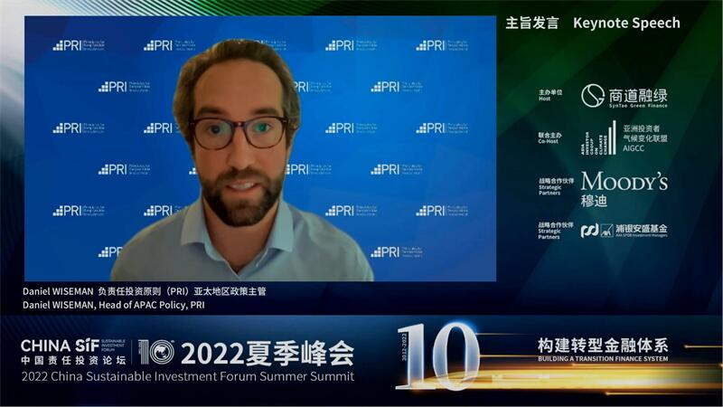 負責任投資原則(PRI)亞太地區政策主管Daniel WISEMAN介紹了PRI在中國推動負責任投資相關政策和監管完善方面所做的工作。他指出,中國的低碳轉型和高質量發展與公正轉型的概念高度相關。為助推重點行業順利轉型,需要采取必要的措施來保障就業,力爭讓全社會共享低碳轉型的好處和機遇。他強調,公正轉型的成功需要政府、投資者和企業的共同努力,并介紹了與商道融綠合作研究的公正轉型信息披露框架。