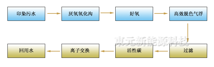 本工藝回用水,可回用至退漿、煮練、漂洗、絲光等前段工序,并與新鮮水混合用于后段工序,染布到一級品出廠標準。操作流程簡便,自動化運行,后段運行費用0.6元/ m3左右,適用于目前印染廢水已經達標排放的企業。加離子交換工藝后,可回用至所有工序。本工藝視具體印染廠的生產產品、染料、助劑、工藝及污水站處理工藝做相應的調整。